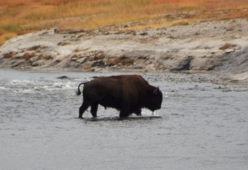 Bizons kwamen ons tegemoet.... warmwaterbronnen omsingelden ons en de "old Faithful" spoot massa's water de hoogte in...