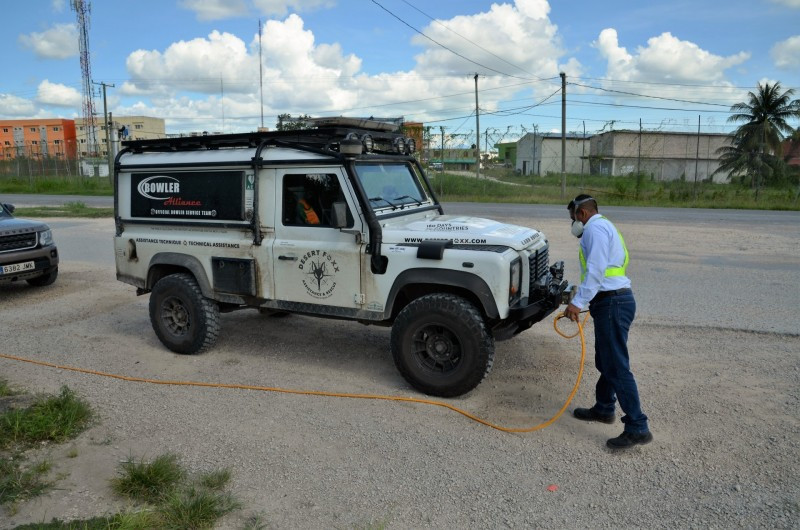 Dan mochten we de scheidingslijn oversteken, maar eerst moest de auto gedesinfecteerd worden... 6 dollar op de tafel en sproeien maar met dat desinfectiespul... enkele minuten later vulden we het arrivalkaartje in en werd ons paspoort Belize ingestempeld... nog een stempel voor de auto en ready to go... “goodafternoon Belize...!!”