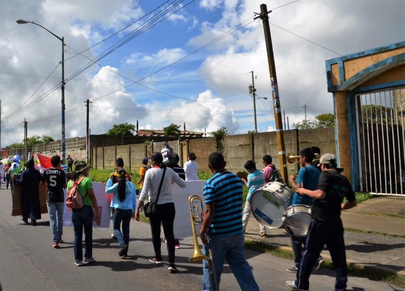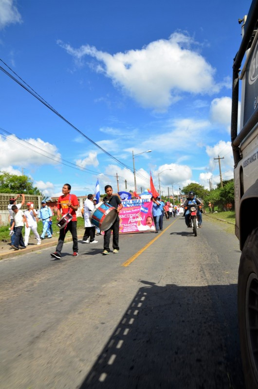 Paspoort uitstempelen aan de Nicaraguaanse kant… 1 dollar voor entreeticketje en 2 dollar voor uit te stempelen… met de autopapieren naar een mannetje met een blauwe T-shirt… of een dametje :-) dan een papiertje invullen en daarmee naar de politie, stempel ontvangen en terug naar het loketje binnenin het grote gebouw… stempel ontvangen en papiertje inleveren…