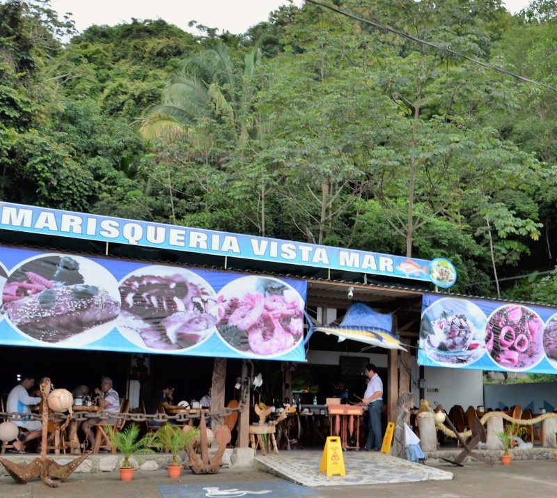 We passeerden de krokodillenbrug en ik greep de kans om midden op de brug uit de auto te springen om enkele foto's te maken... Enkele kilometers verder merkten we een leuk eettentje op... remmen en aanschuiven... een typisch vers visrestaurant... De heren en Corinne bestelden een assortiment schotel en ik koos voor gebakken rijst met kip... genieten….
