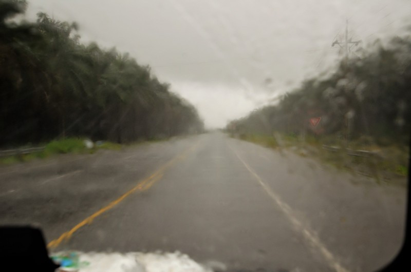 Bon... betalen en weer verder want het was nog een eindje ... een fikse regenbui deed onze trip wat vertragen… door de druppels door zochten we het pad… een gordijn van water belemmerde het zicht tot een meter… oppassen geblazen … het regenseizoen deed volop zijn job…