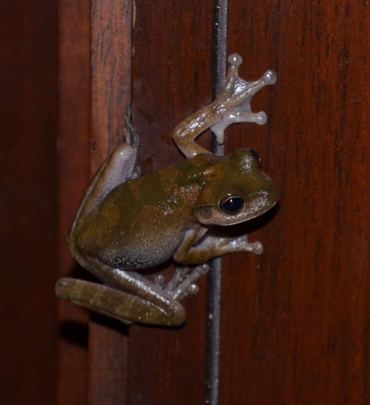 De auto werd bij de receptie geparkeerd en de bagage in een golfkarretje geladen... plaatsnemen en laten rijden... prachtig mooie huisjes met uitzicht op het adembenemende dal... een huisvriend wachtte ons geduldig op... wat een mooie kikker...