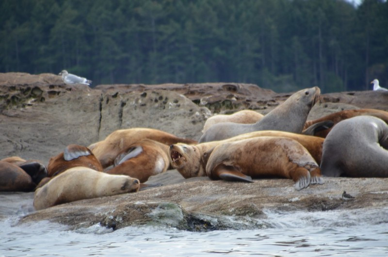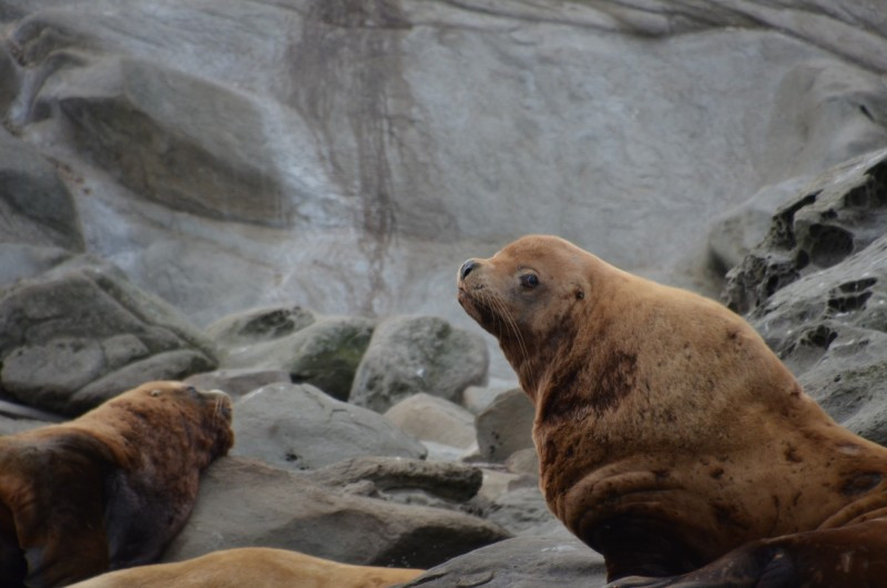 Een dik uur later werd de terugtocht ingezet... we passeerden nog langs de zeeleeuwen en de zeehondjes... ze lagen lui uit te rusten op de eilandjes... fiiiieeeeuuuwwww wat een grote beesten... 1000 kg gemiddeld weegt zo'n reus... en wat een knorrende geluid... jeetje... en de geur was ook apart... hahaha...