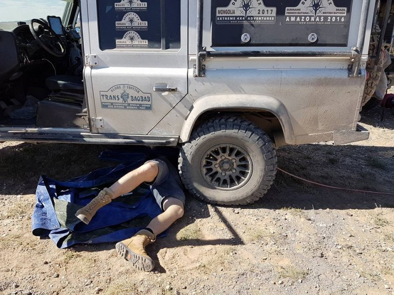 Gereedschapskist uithalen en demonteren... Frédéric nam de rest van de groep mee op sleeptouw en Gregory stak een sleutelhandje bij... MacGyver toverde weer wat sleuteltrucs uit zijn mouw en enige tijd later vertrokken we weer met 4 auto's, Gregory, Pelle, Wouter en mezelf met Loeks auto...