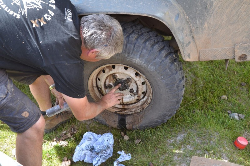 Toen we wat later even halt maakten voor enkele foto's riep Loek Wouter even tot bij zijn auto... de bevestiging van het reservewiel zat een beetje los... enkele bouten weer aandraaien en rijden Loek...