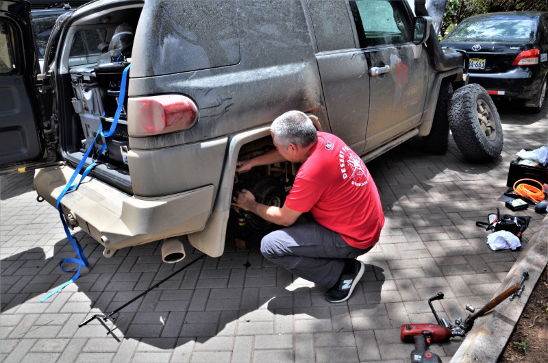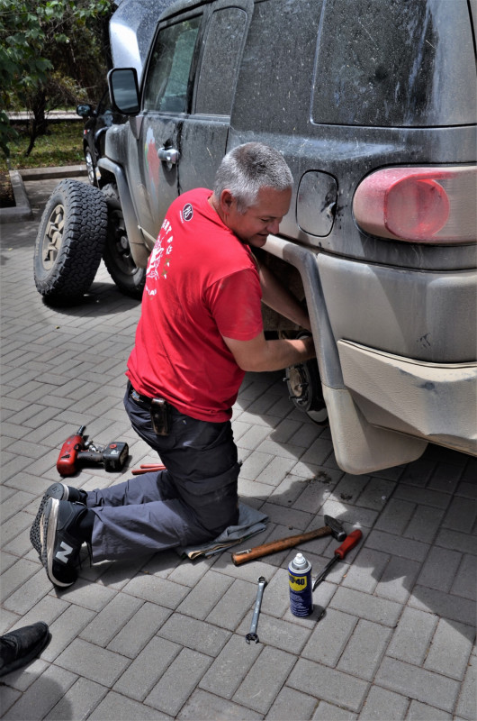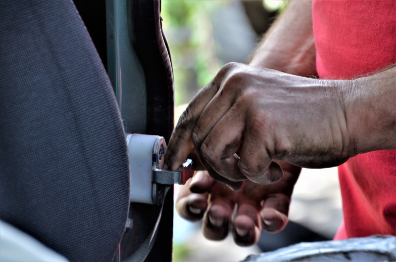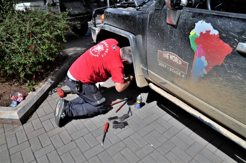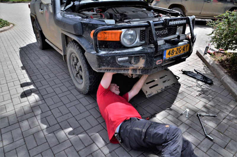 Vervolgens zat de bumper van Alfons maar met 3 bouten vast in plaats van met 8… Wouter draaide bouten bij tot alle bevestigingsgaten gevuld waren…