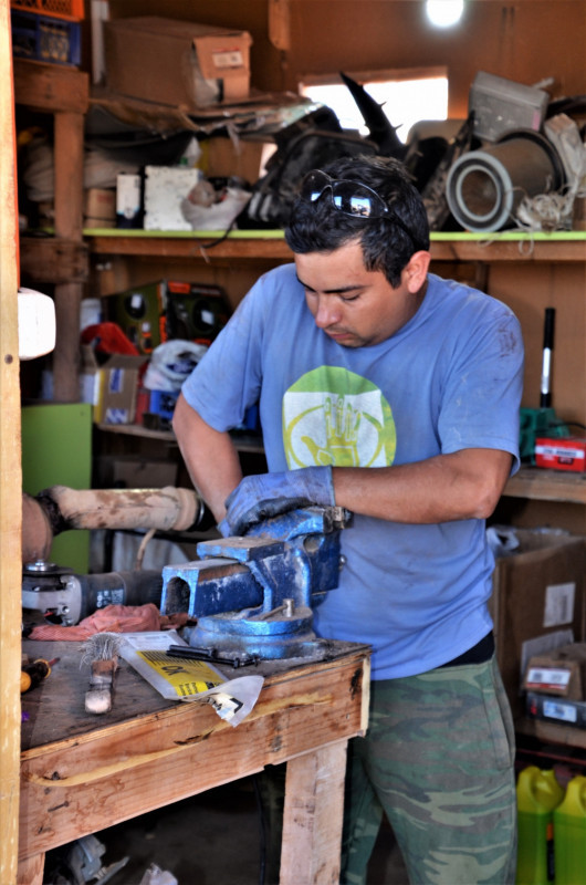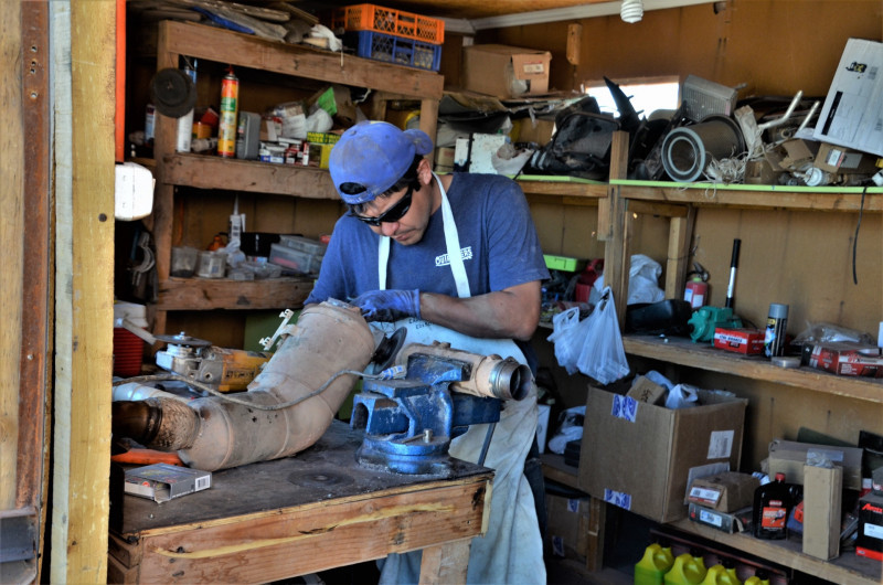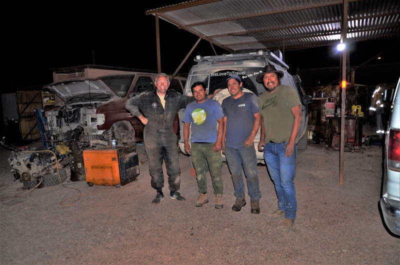 Toevallig sloegen we een enkelrichtingstraatje in langs de verkeerde kant… oeps… achteruit… oh wat zagen we daar… een autoput ?... de patron kwam net aanrijden… we expliceerde in ons beste Spaans dat er een uitlaat van een auto gelast moest worden…