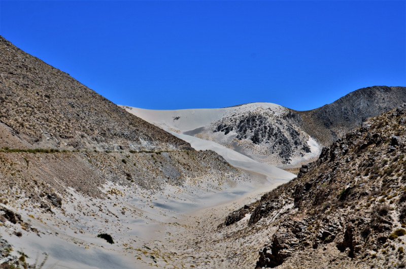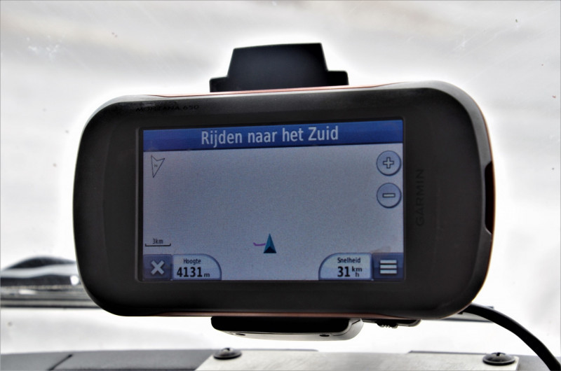 Wat verder verdronken we met een klein stukje van de banden in woestijnzand… zwiepend gingen we er doorheen… prachtig… woestijnzand tussen en op de bergen...