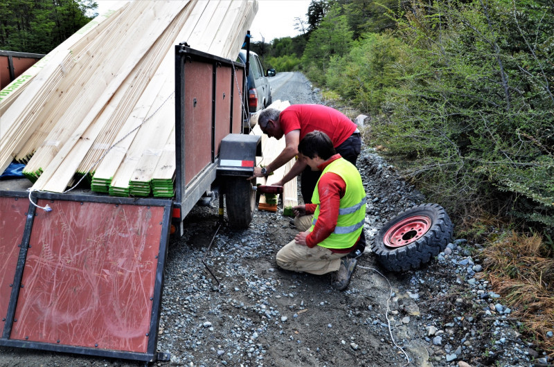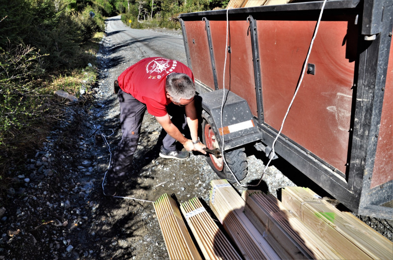 Wouter gooide zijn befaamde materiaalbak open en maakte de man in 5 minuten weer happy… vervangen… hout terug inladen en hij kon weer verder…