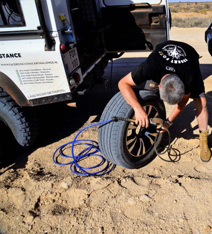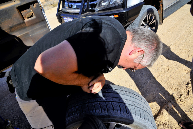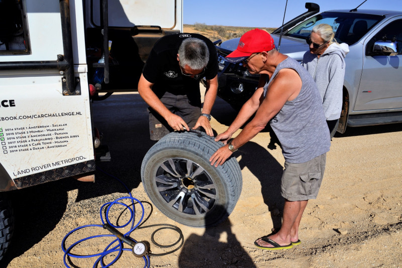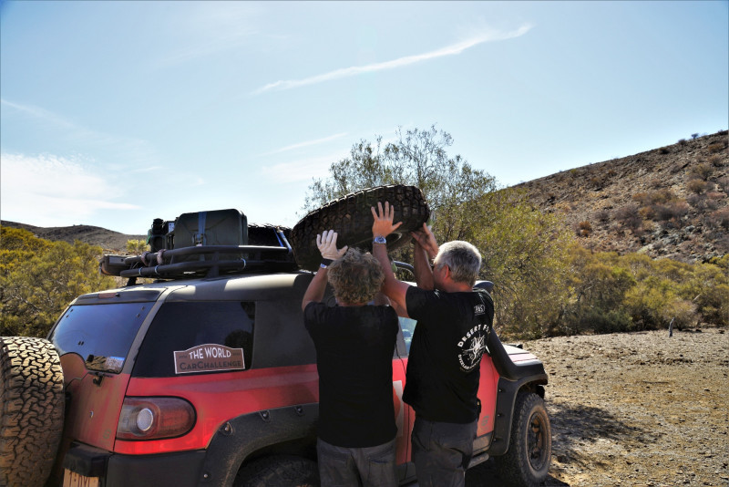 Een man stond met een lekke band aan de kant van de track… zijn vrouw keek heel ongelukkig toen we vroegen of alles ok was…