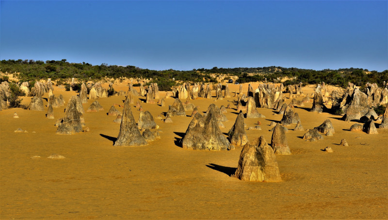De route bracht ons tot bij het Nambung national park… Een formatie van duizenden kalkstenen pilaren in de woestijn…. Een uitzicht van massa’s stenen …