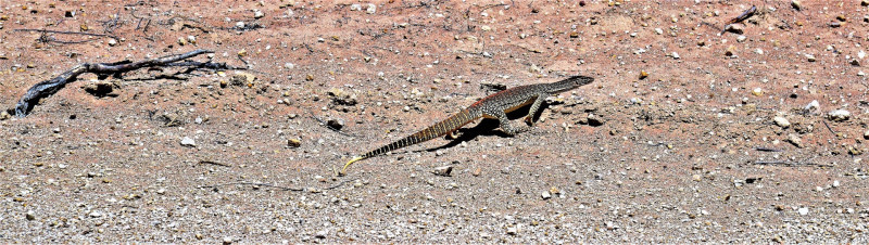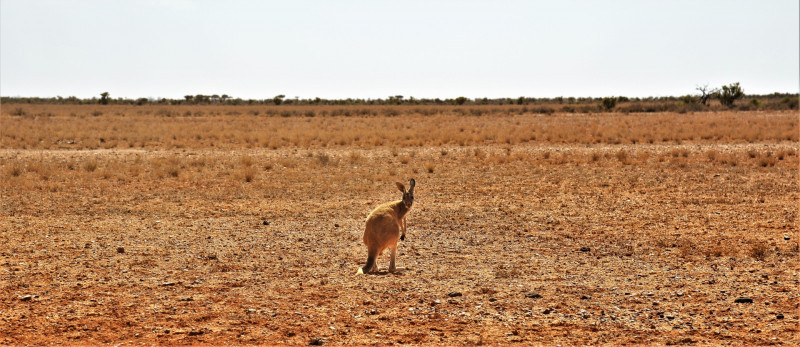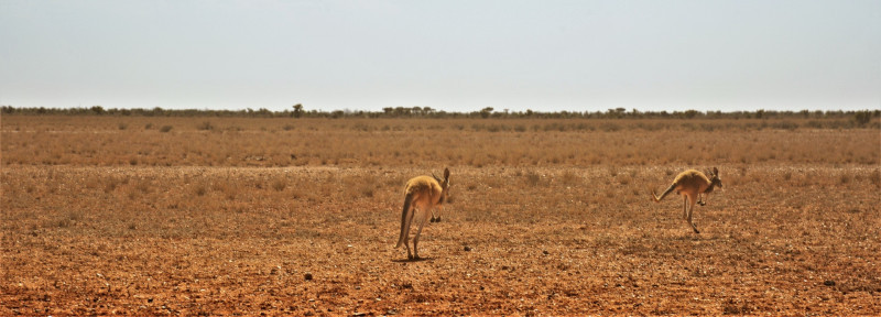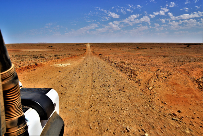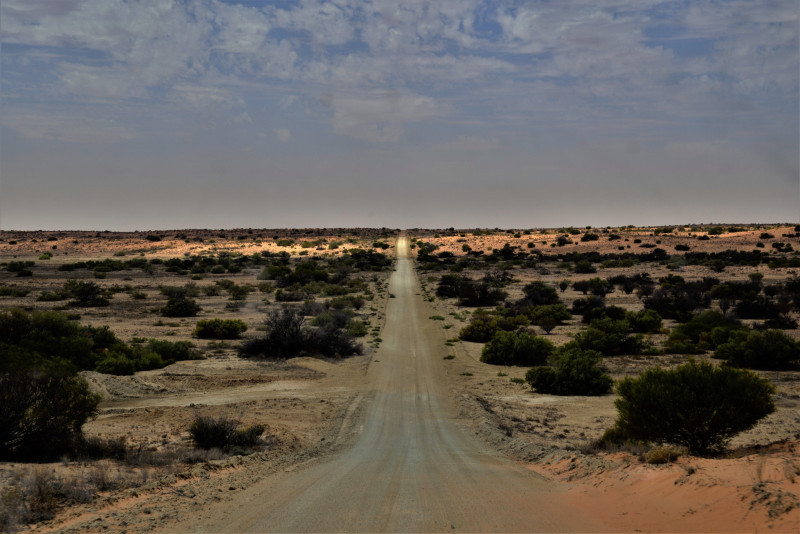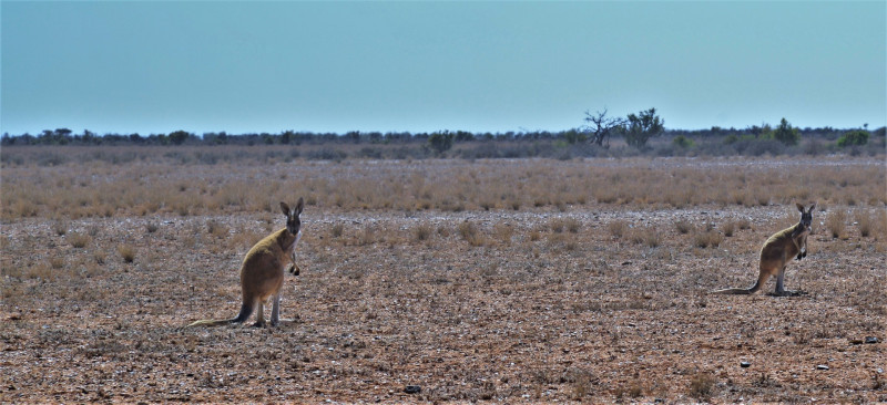 Het landschap werd iets meer zanderig… het op en af de kleine bergjes rijden deed ons het gevoel krijgen van een attractiepark… op en af… met daar tussen een overstekende kangoeroe…