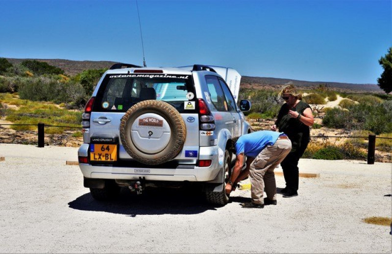 Het eerste stuk over het asfalt ging vrij vlot … lange brede wegen… af en toe kwamen we een 4x4 tegen met een offroad caravan erachteraan…