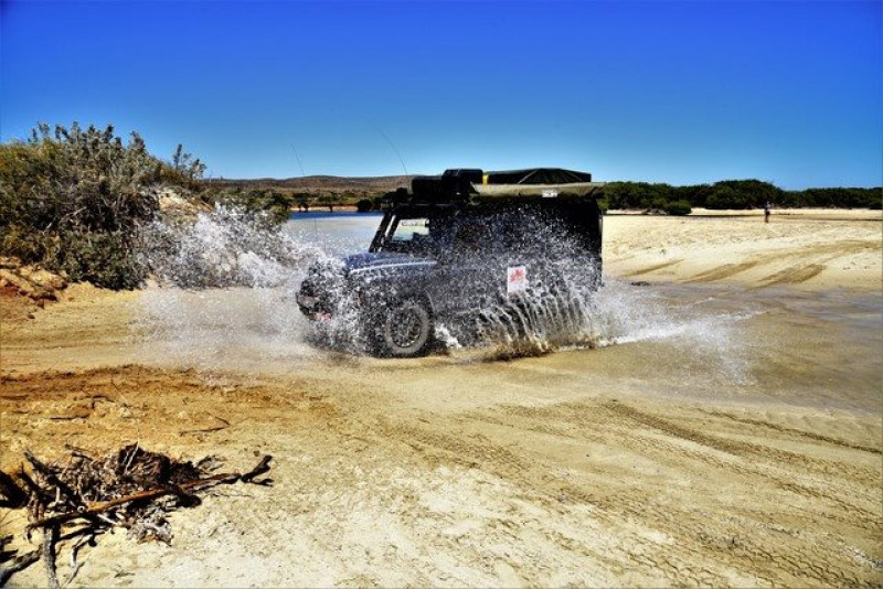 Na 100 km staken we de rivier over, het water stond laag en dat werd een speeltuin voor velen….