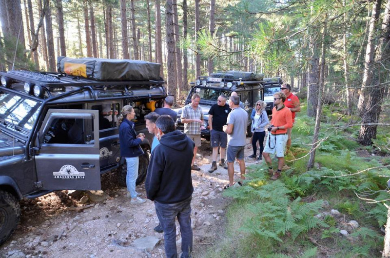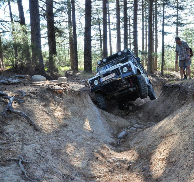 Rotsblokken, pistes door het bos en zelfs een diepe droogstaande watergeul was ons niet te veel...